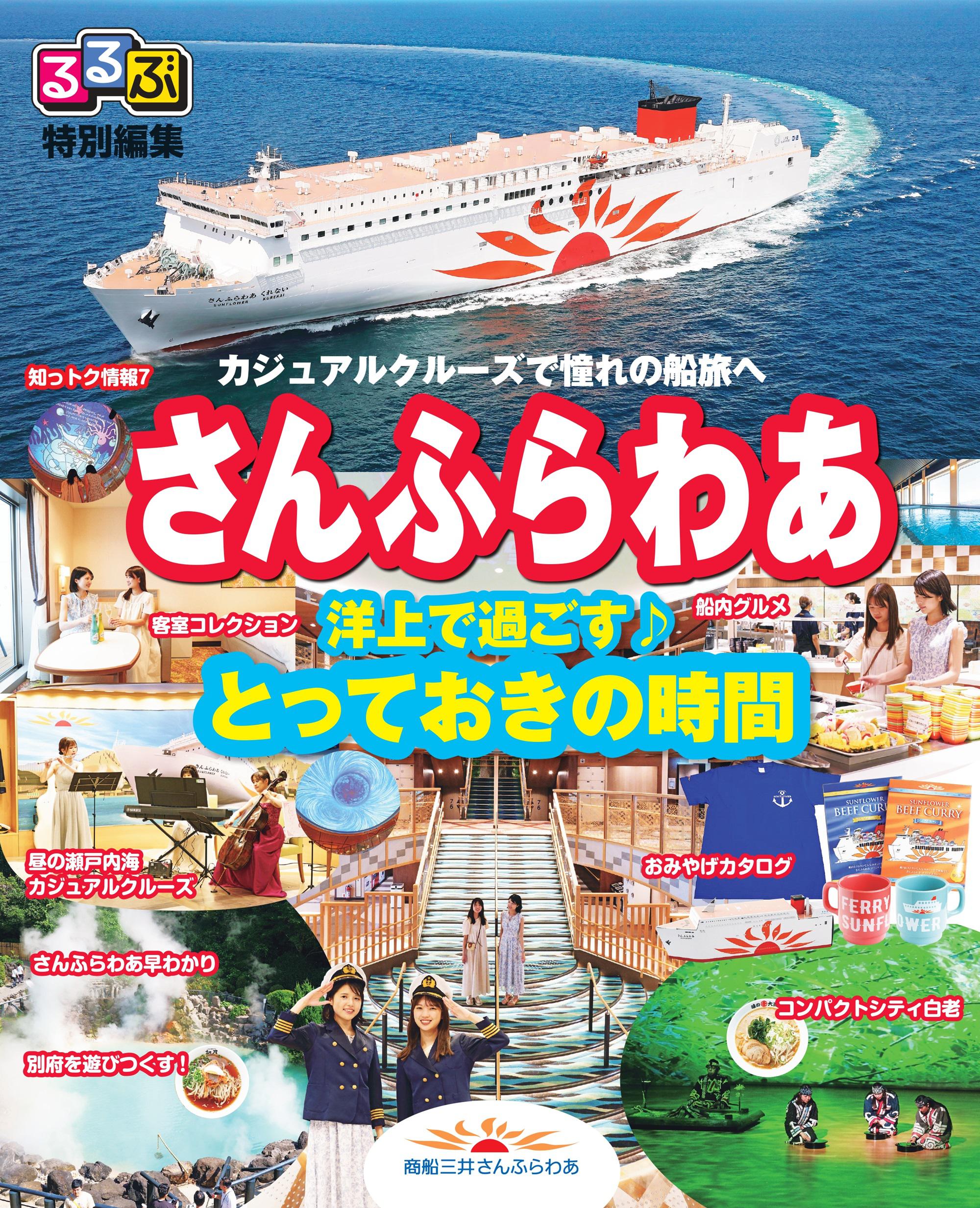 「るるぶ特別編集 さんふらわあ」は、当社での船の旅をもっと楽しんでいただくためのガイドブックです。本誌では、年に数回の特別運航「昼の瀬戸内海カジュアルクルーズ」の魅力をたっぷり紹介し、快適で多彩な船室の選び方やおすすめポイントを特集しています。また、船内レストランのグルメ情報や、さんふらわあ船内限定のお土産のカタログも掲載。さらに現地を満喫できる、別府の観光スポットや白老の魅力と見どころも紹介しています。