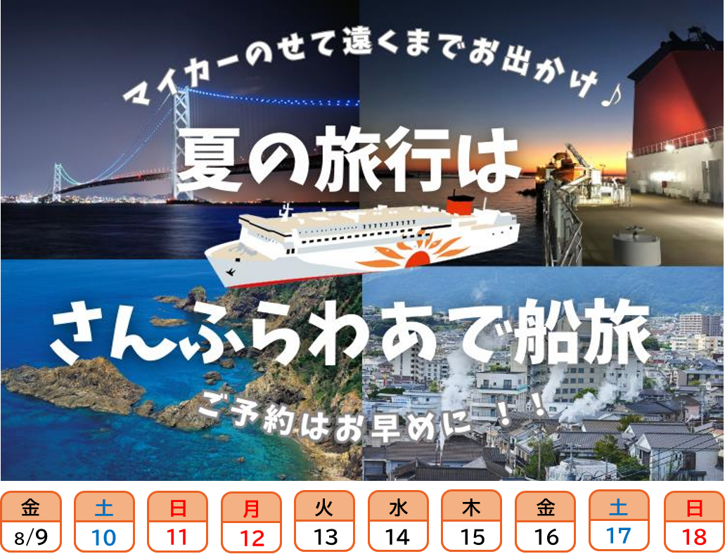 関西~九州航路のさんふらわあでは、夏のご予約を受付中!