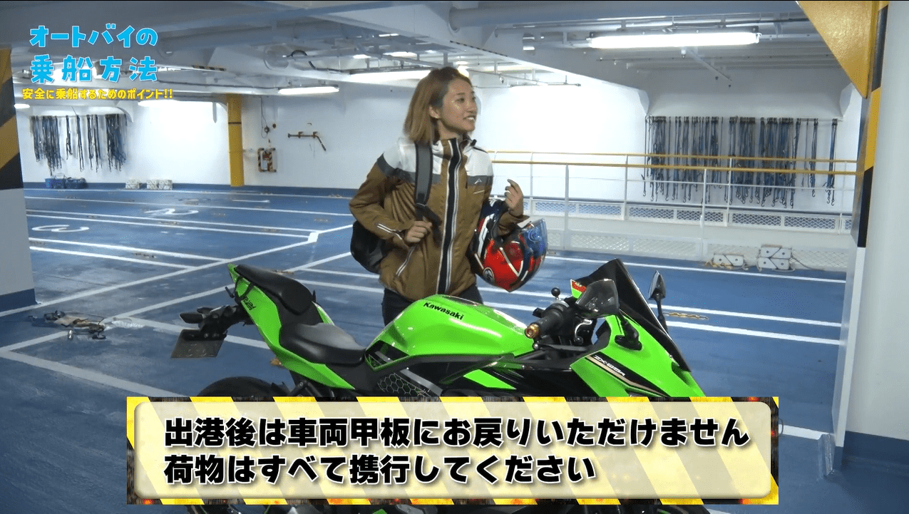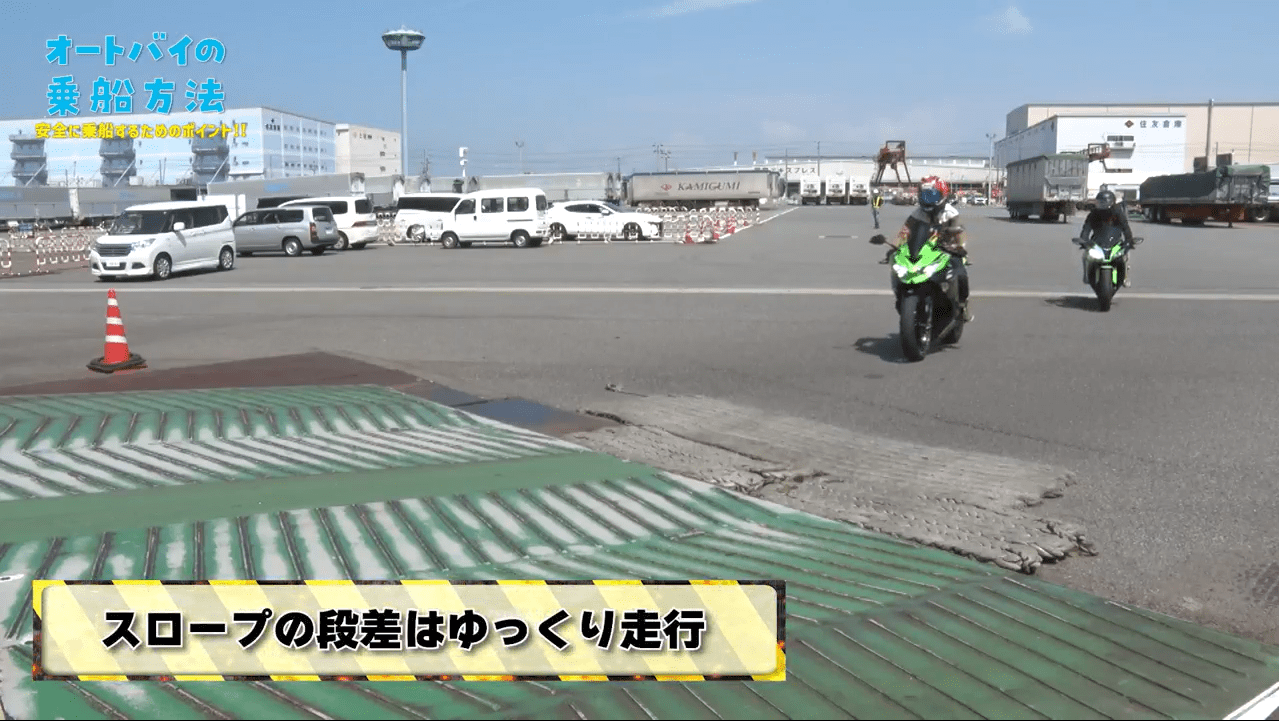 普段とは異なる船の中でのバイクの操縦に不安を感じる方や、初めてバイクでフェリーにご乗船される方に向けた、オートバイ乗船動画を作成いたしました。注意するべきポイントや、船の中の様子が分かりますのでご乗船前にぜひご確認ください。商船三井さんふらわあは、お客様が安心・安全にご乗船いただけるよう今後も努力を続けます。