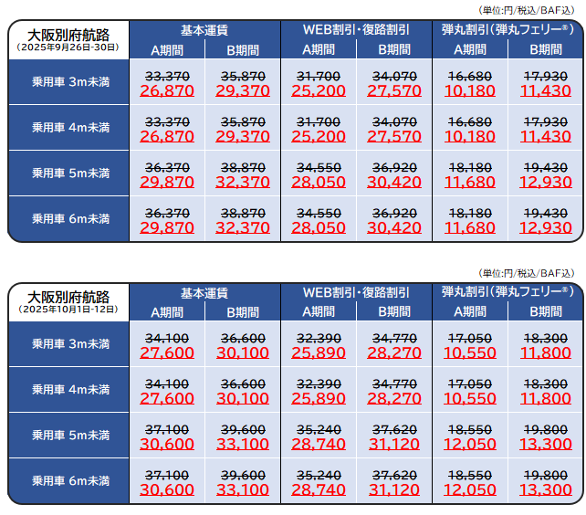 ・WEB割引、復路割引、弾丸割引(弾丸フェリー®)適用予約も対象
