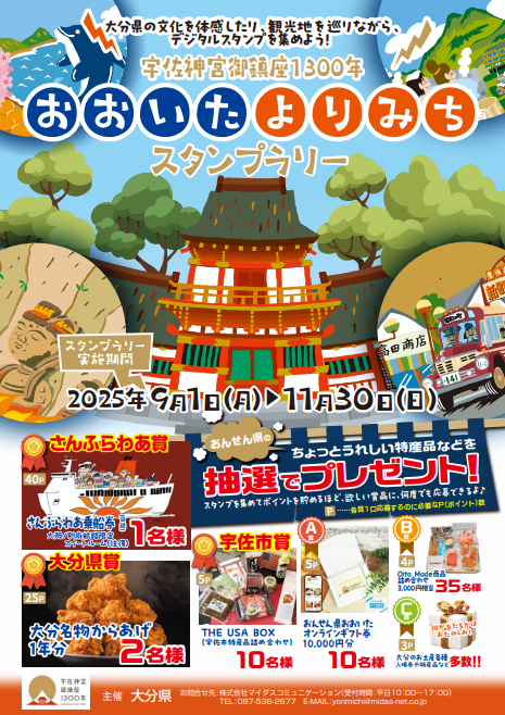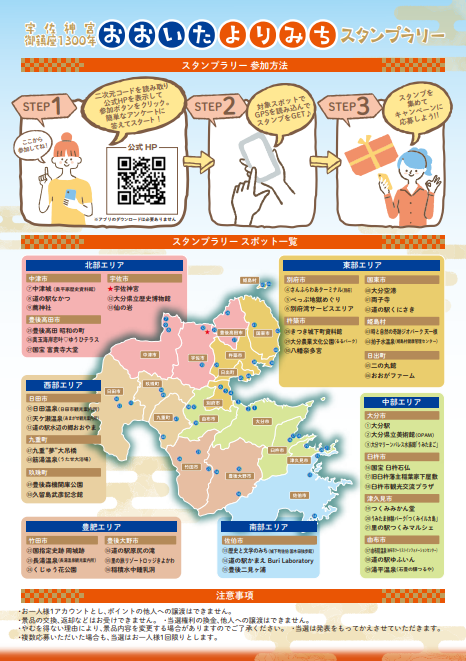 大分県主催で、宇佐神宮御鎮座1300年おおいたよりみちスタンプラリーを開催します。