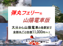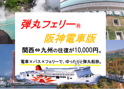 山陽電車版 対象:神戸⇔大分航路 山陽電車各駅~阪神御影駅の往復切符、阪神御影駅~神戸港のバス運賃、弾丸プラン往復運賃がセットに。 |