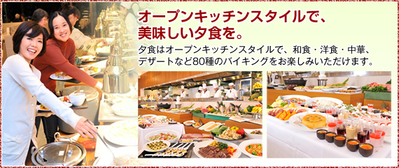 ![]() 豊富な品ぞろえと地元食材を使ったバイキングは旅の楽しみのひとつです! |