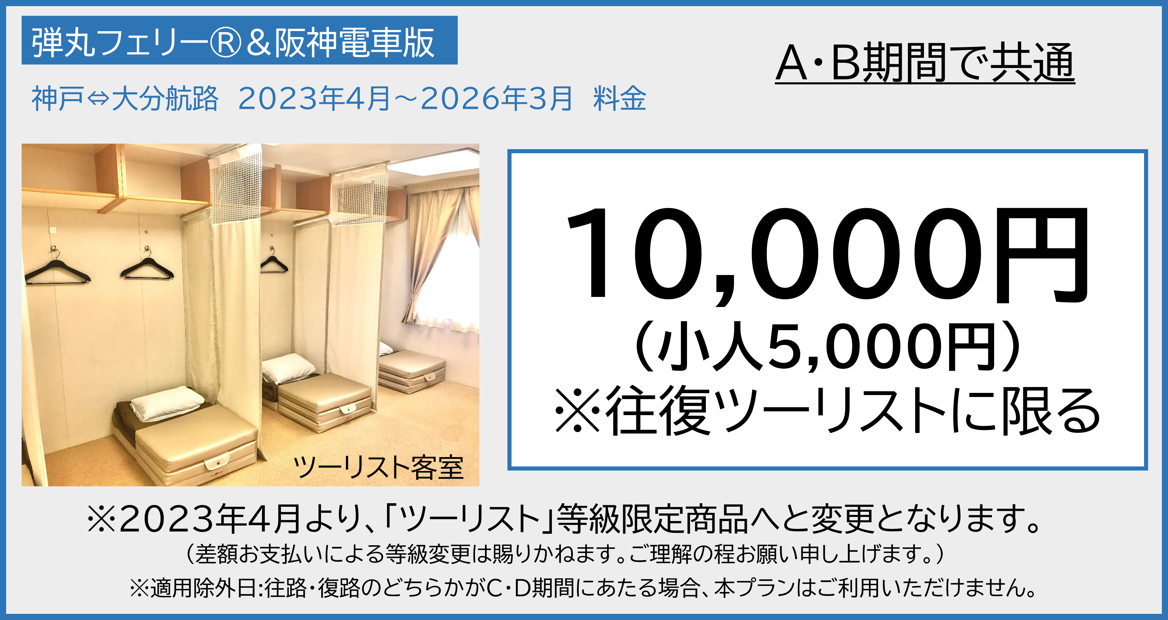 弾丸フェリー®【阪神電車版】(①神戸発・②大分発のどちらでもご利用になれます。)