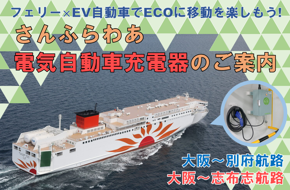 大阪~別府航路・大阪~志布志航路での電気自動車充電器のご案内(完全予約制)