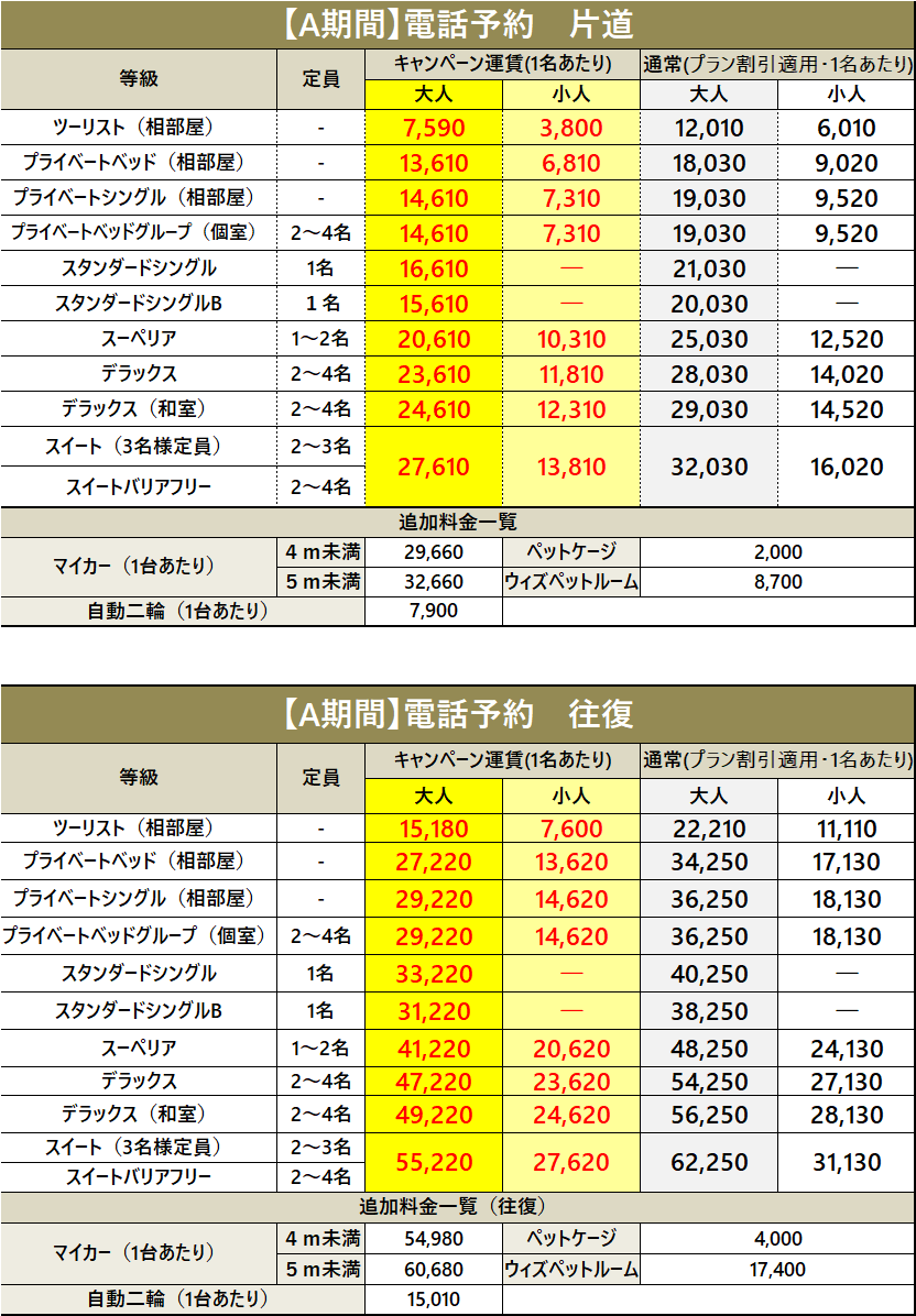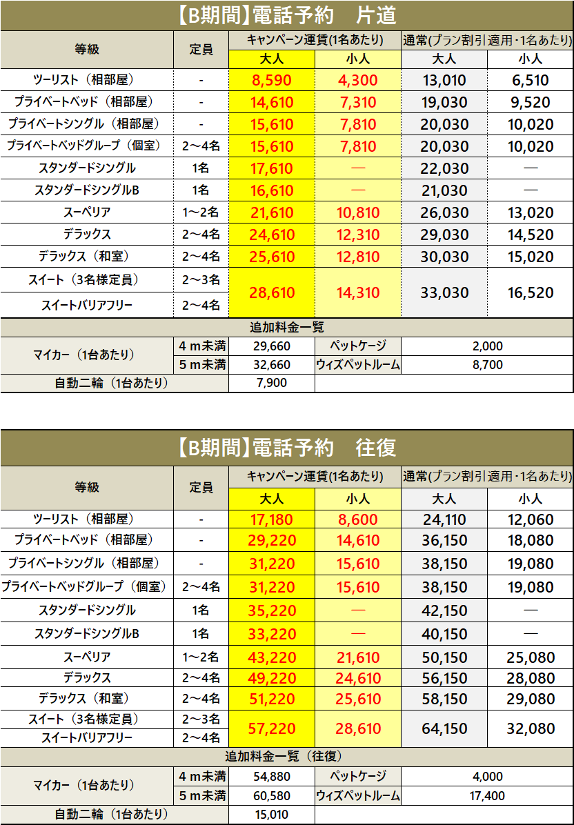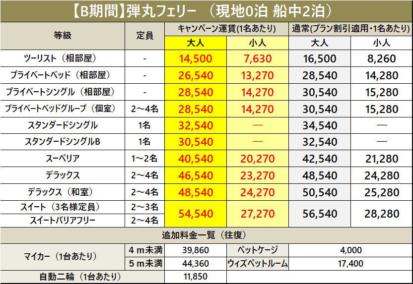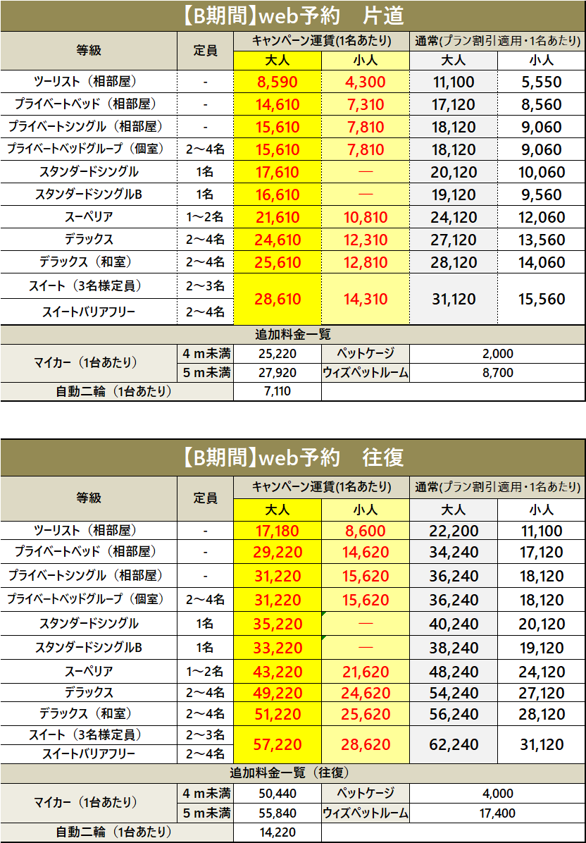・車両運賃は大人1名様のプラベートベッド料金を含みます。
