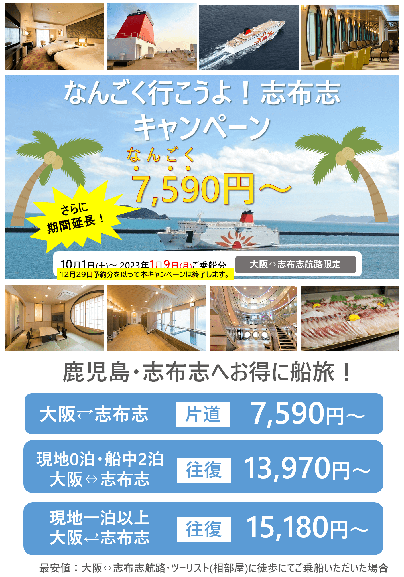 ≪12/29終了≫「なんごく(7,590)行こうよ!志布志」キャンペーンでお得に船旅!