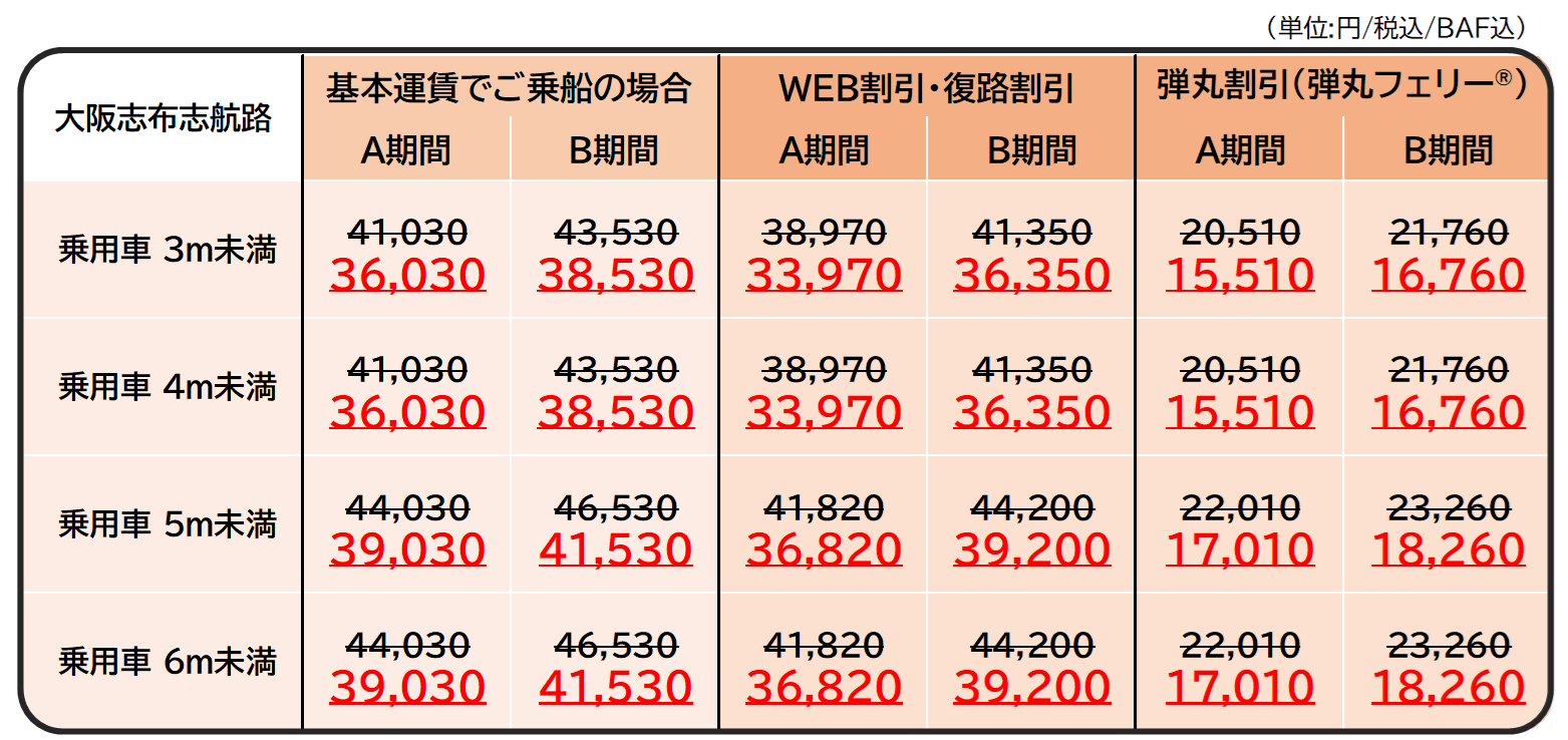 ※WEB割、復路割、弾丸割引(弾丸フェリー®)以外の割引は適用対象外となります。