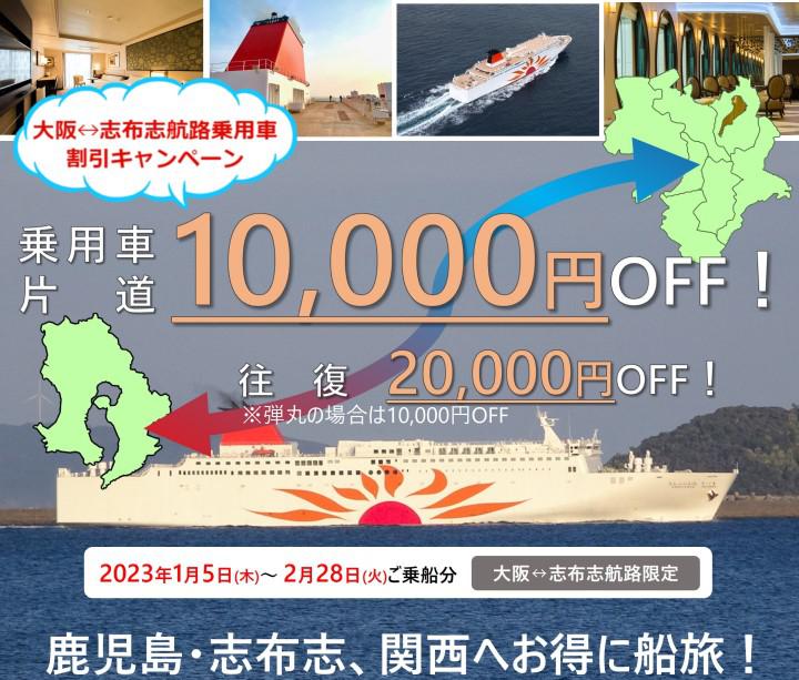 【終了しました】【片道1万円OFF!】志布志航路乗用車割引キャンペーン(1/5~2/28)