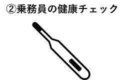 ②乗務員の体調管理について、手洗い・うがい・アルコール消毒の徹底を指示し、毎朝の体温測定および、