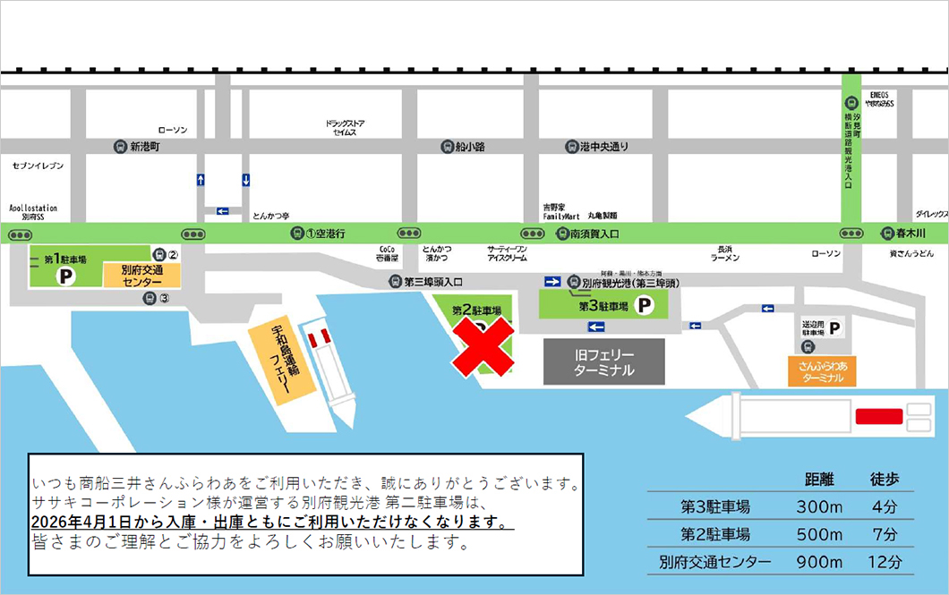 | 問合せ先 | 別府国際観光港駐車場(ササキコーポレーション) TEL 0977-84-7010 |