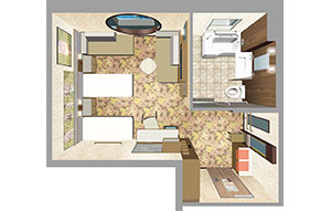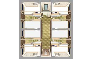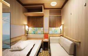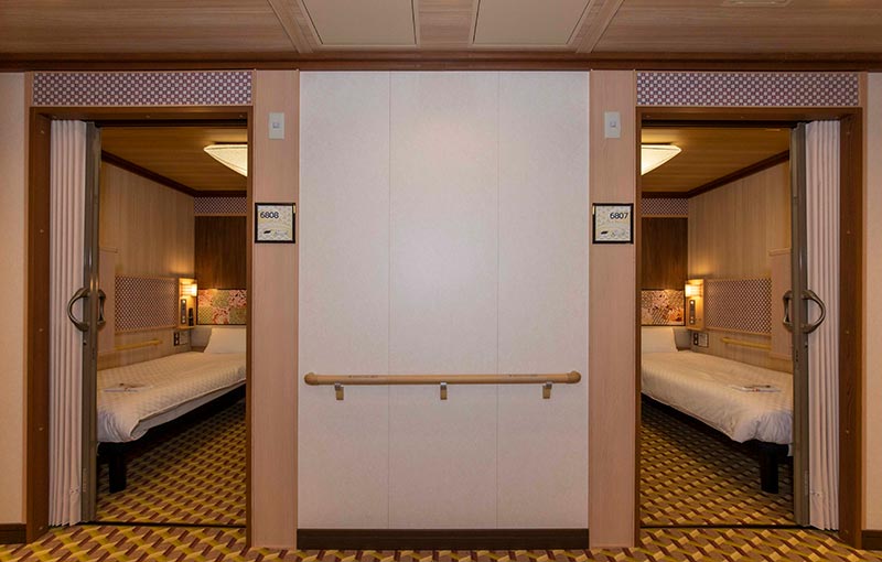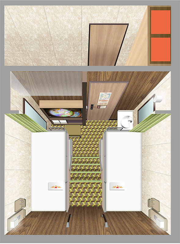 | お部屋タイプ | 洋室 ※相部屋タイプ、内鍵のみ(室外からの施錠不可) ※1区画にプライベートシングルツイン2室、プライベートツイン2室となっています。 |