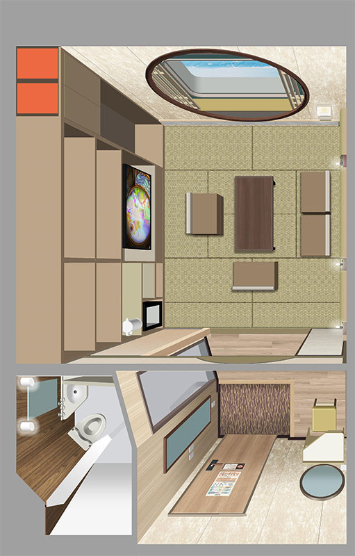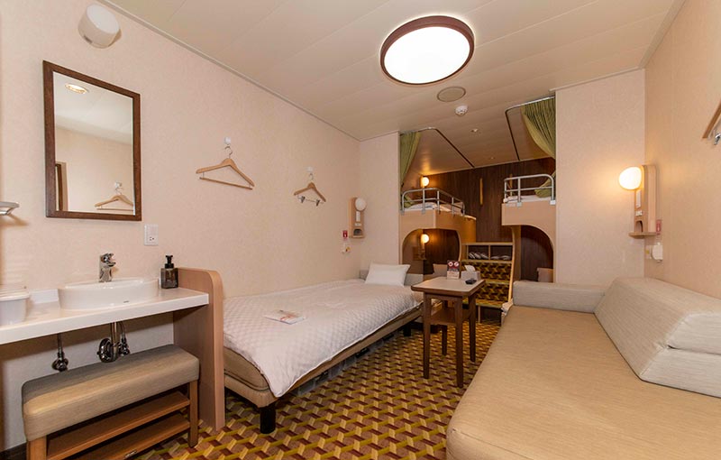 3・4名様でご利用の場合、エキストラベッドを使用するため、予約は、乗船当日の12時までにお済ませください。乗船手続き時の予約・追加はできません。