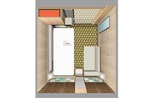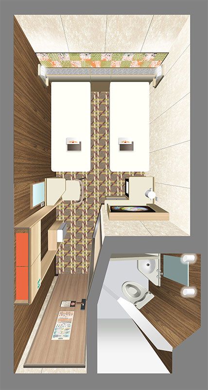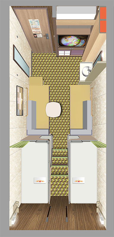 | 入口幅 | 区画入口:145cm 定員3名:63cm 定員4名:77cm (アコーディオンカーテン) |
