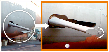 フインスタビライザーは、「横揺れ」を防止することはできますが、「縦揺れ」等には効果ありません。また、大時化になると波が本船にぶつかり、その衝撃が荷物、車両の移動のきっかけとなりますが、フインスタビライザーは、動揺に対して万能ではありません。