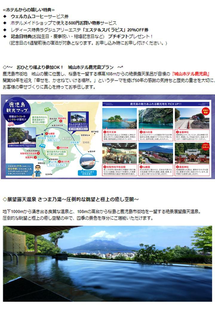 ●食事条件:城山ホテル鹿児島1泊につき朝食1回