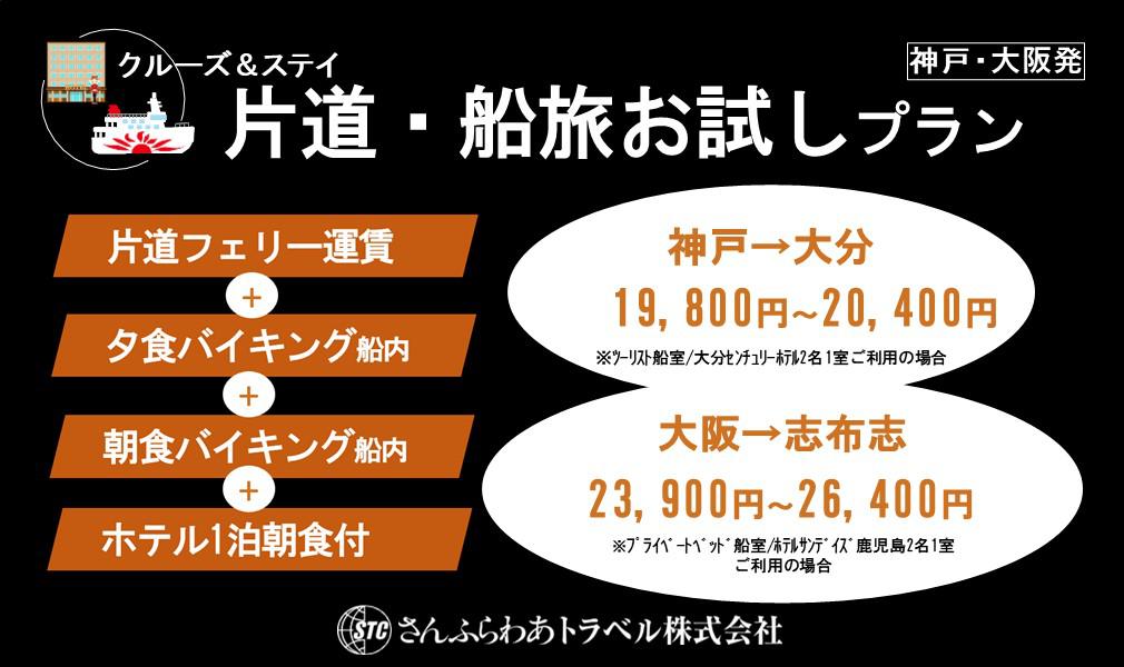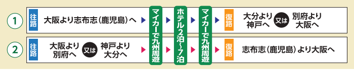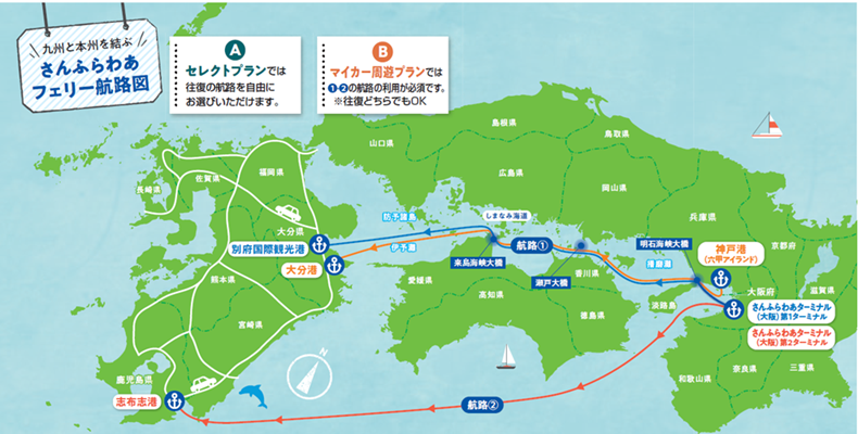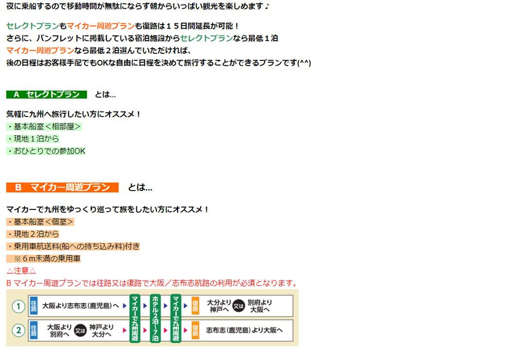 ▶Bプランでは 片道は必ず志布志航路(大阪⇔鹿児島間)の利用が必要となります。 |