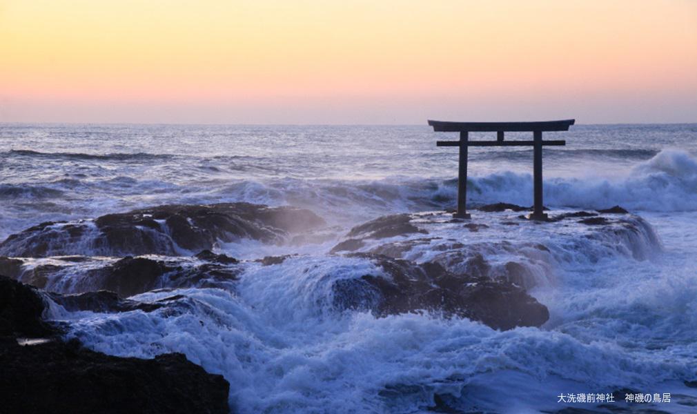 海に突き出した磯に建つ鳥居からはちょうど日の出が拝め、