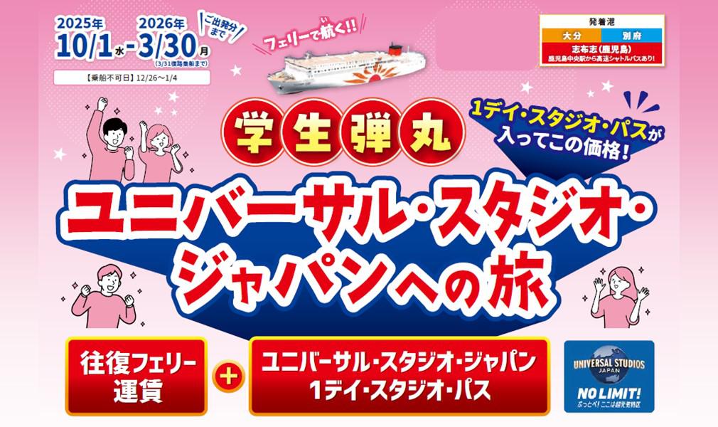 | 1日目 | 別府国際観光港~~~(船中泊) 【日~木】18:45発 【金・土】19:20発 |