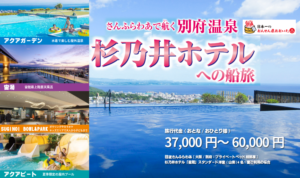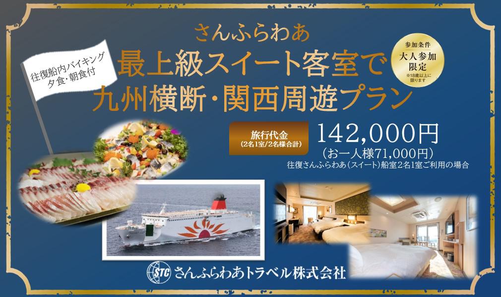 - ● 往復フェリー運賃(大阪⇔別府:デラックス・セミスイート・スイート)