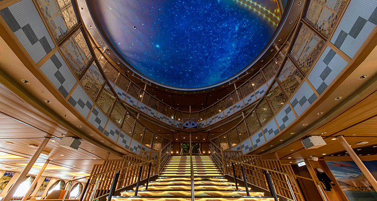 天花板投影幕上投射出生動的影像。讓乘船之旅變得更別具一格。