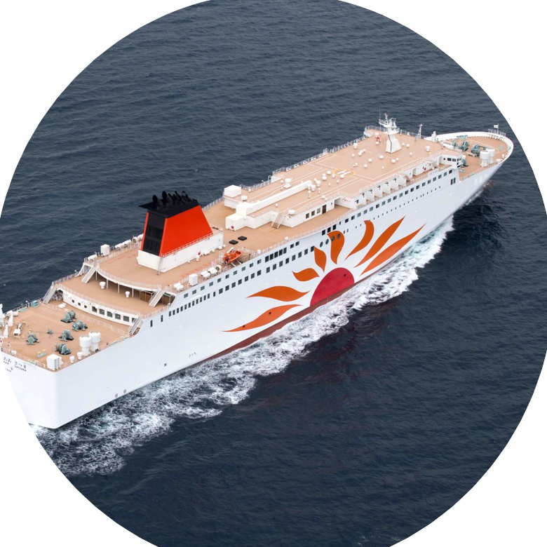 向日葵渡輪提供了媲美高級飯店般的豪華套房和客房備品。敬請沉浸於海天一色的廣闊與美景。