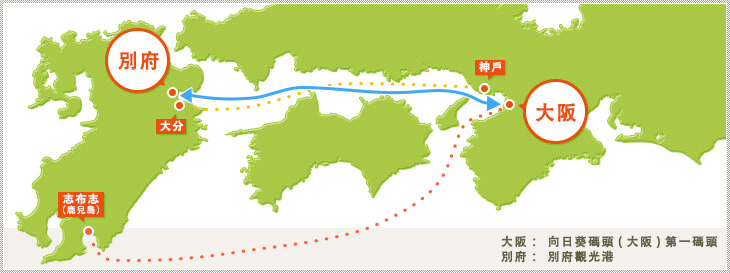 | 星期幾 | 從大阪至別府 | 從別府到大阪 | ||