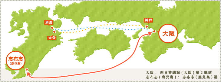 | 星期幾 | 從大阪至志布志(鹿兒島) | 從志布志(鹿兒島)至大阪 | ||